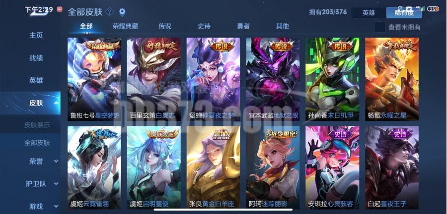 • 总皮肤数量:203个皮肤